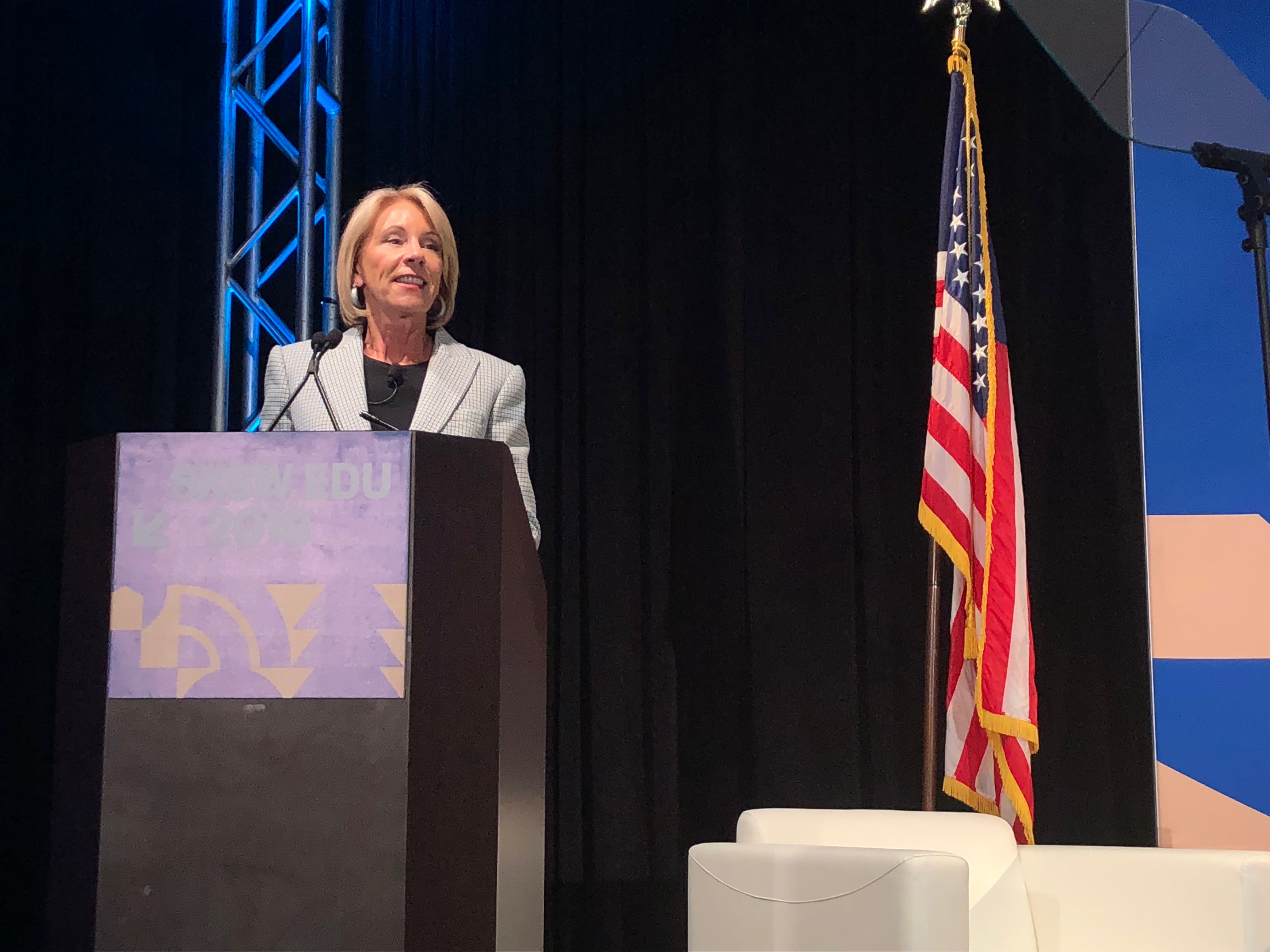 Education Secretary Betsy DeVos made a last-minute appearance at SXSW EDU on Tuesday, calling for a “rethink” of American higher education. In an unusual move, DeVos spent the bulk of the session serving as moderator, asking questions and seeking policy advice from three panelists.